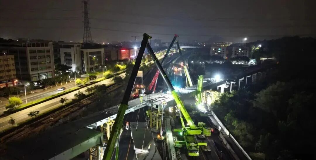 ▲俯瞰钢箱梁吊装现场。图源:广东省交通集团