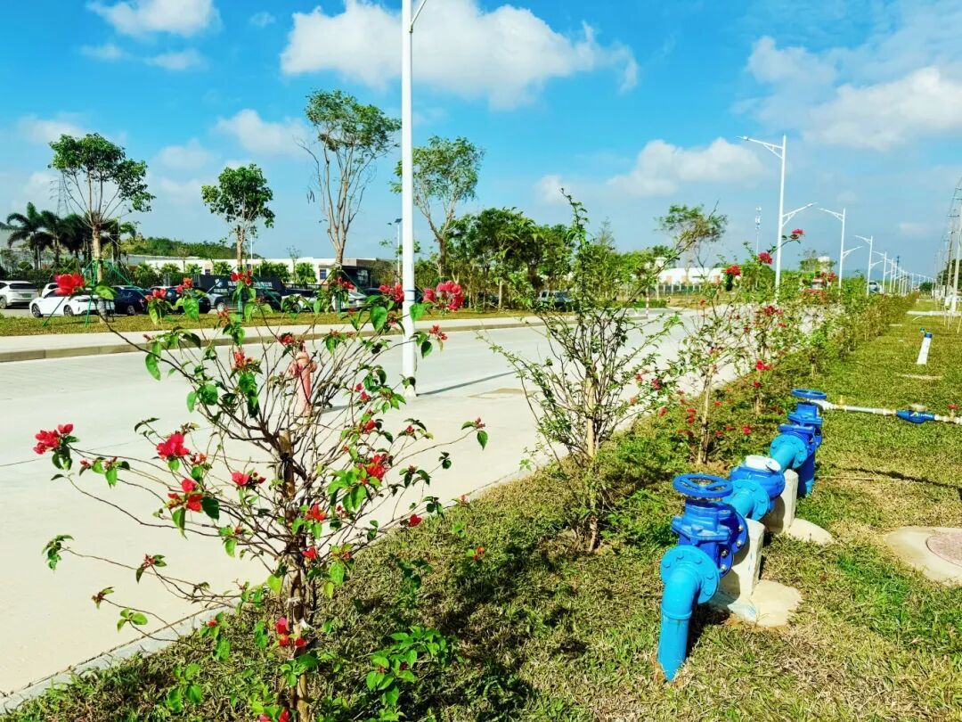 为提升道路景观,项目还挑选适合本地气候观赏性强、易存活的植被品种。在道路两侧种植了簕杜鹃、凤凰木、秋枫等多种植物,搭配草坪、灌木形成层次丰富的绿化景观。